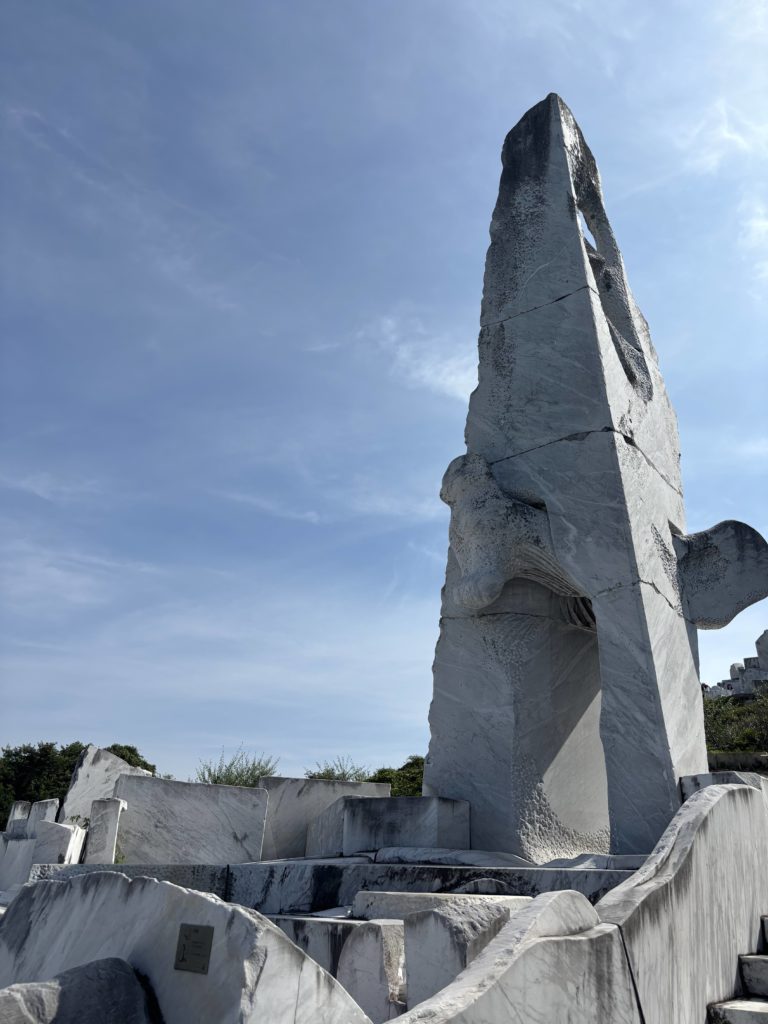 まっ白い大理石が、太陽の光や雨風によって少しずつ周りの自然の青々しい景色とも
